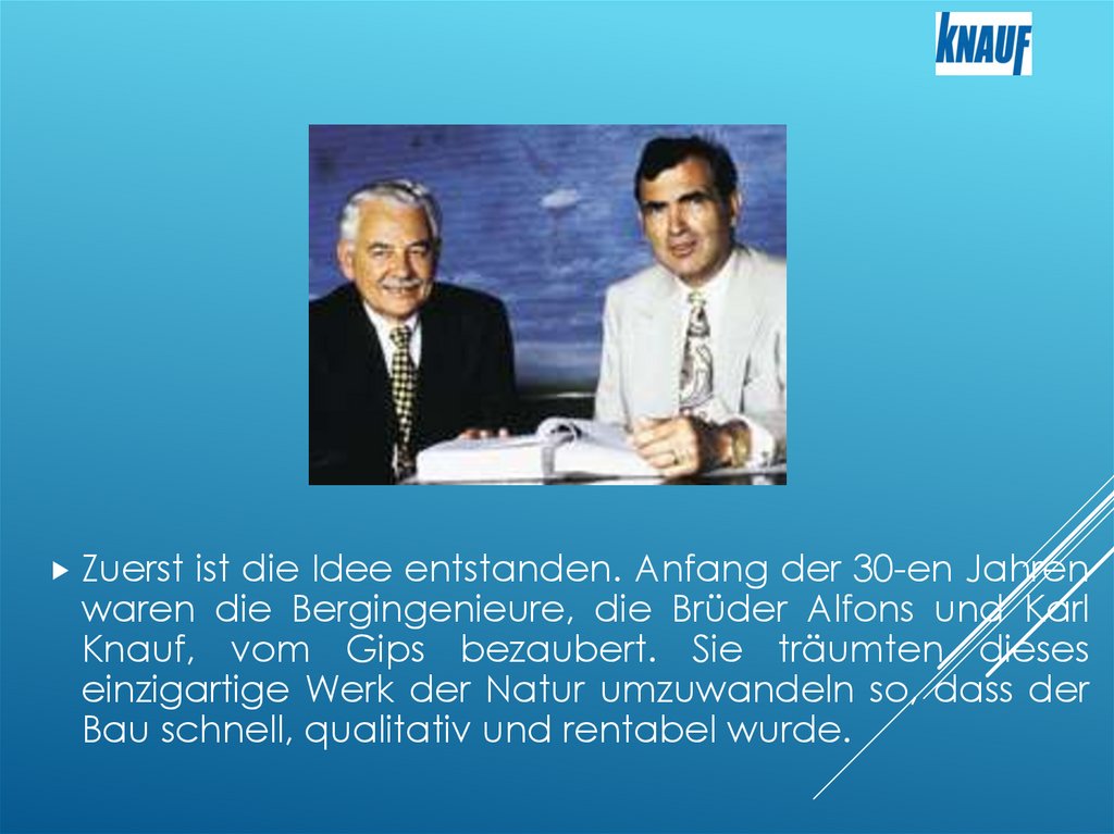 In 1932 haben die BrüderKnauf die Firma "Reinische