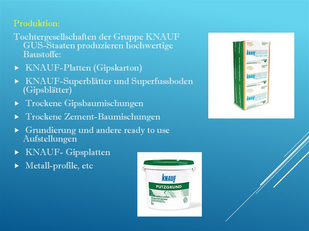 Produktion:Tochtergesellschaften der Gruppe KNAUF