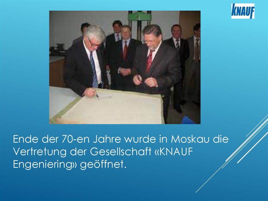 Ende der 70-en Jahre wurde in Moskau dieVertretung der Gesellschaft «KNAUF
