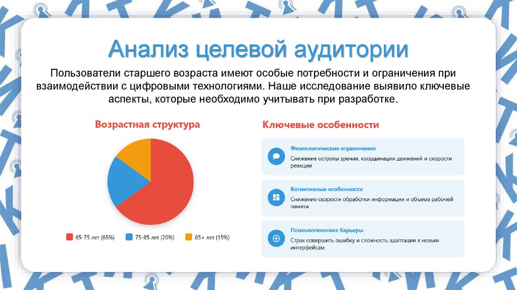 Анализ целевой аудиторииПользователи старшего возраста имеют особые потребности и ограничения при