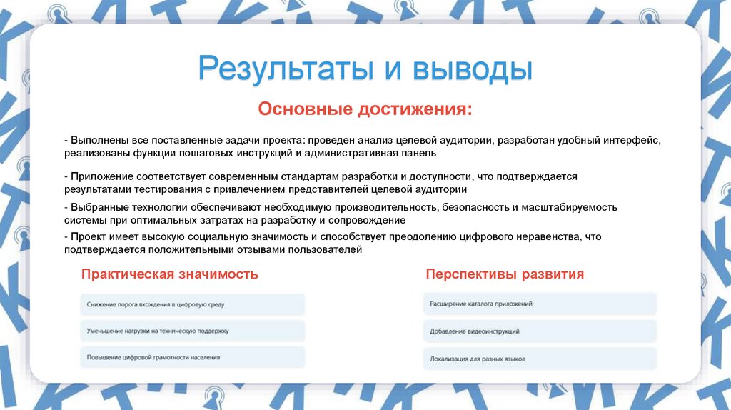- Проект имеет высокую социальную значимость и способствует преодолению цифрового неравенства, что