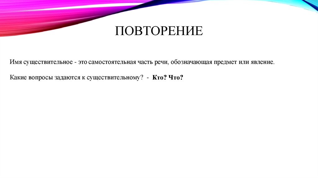 ПОВТОРЕНИЕИмя существительное - это самостоятельная часть речи, обозначающая предмет или явление.