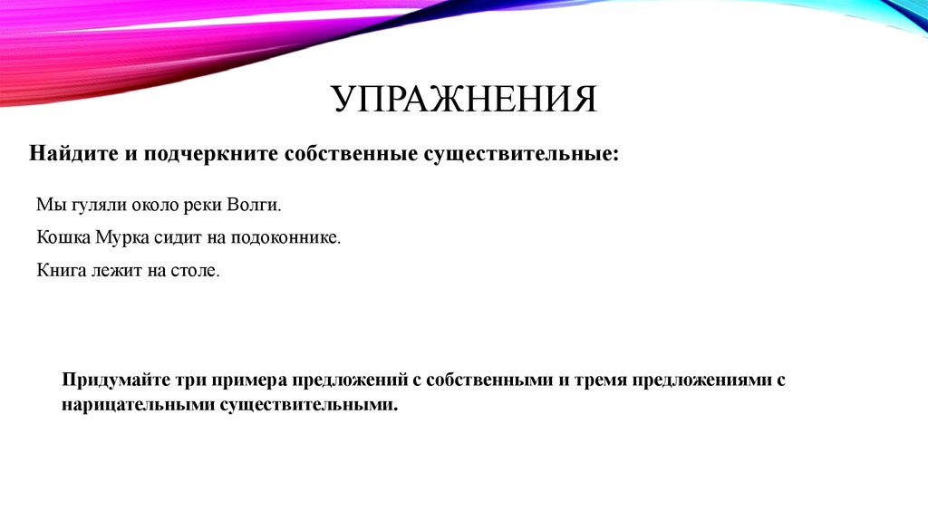 УПРАЖНЕНИЯНайдите и подчеркните собственные существительные: