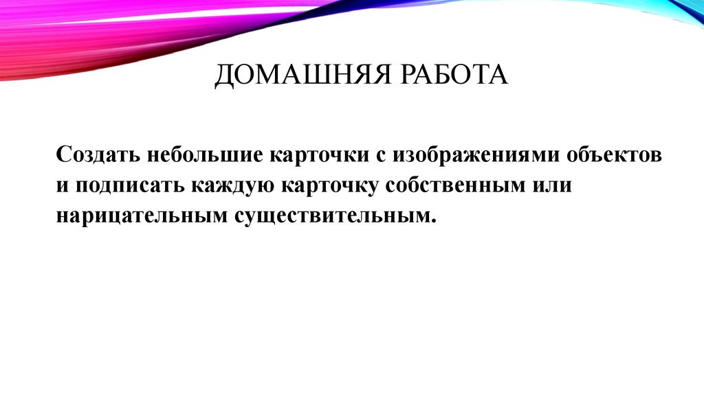 ДОМАШНЯЯ РАБОТАСоздать небольшие карточки с изображениями объектов
