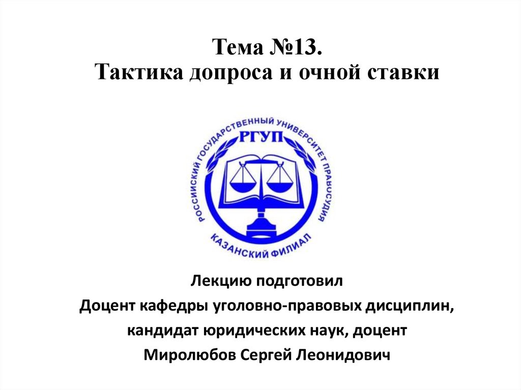 1. Тема №1 Криминалистика как область научного знания Тема №13. Тактика допроса и очной ставки