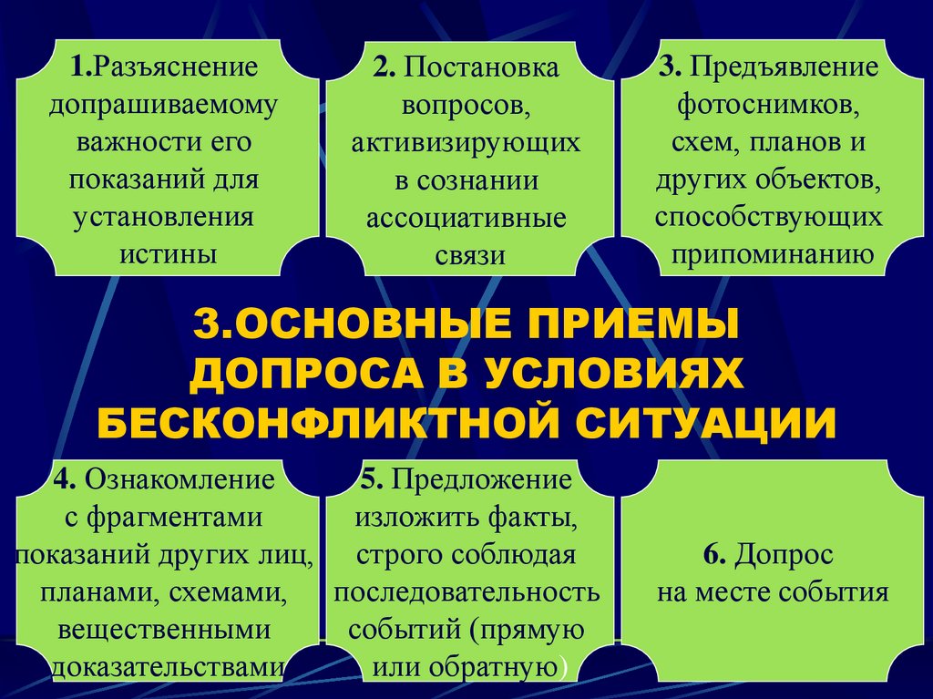 11. 3.ОСНОВНЫЕ ПРИЕМЫ ДОПРОСА В УСЛОВИЯХ БЕСКОНФЛИКТНОЙ СИТУАЦИИ