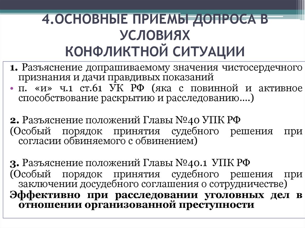 12. 4.ОСНОВНЫЕ ПРИЕМЫ ДОПРОСА В УСЛОВИЯХ КОНФЛИКТНОЙ СИТУАЦИИ
