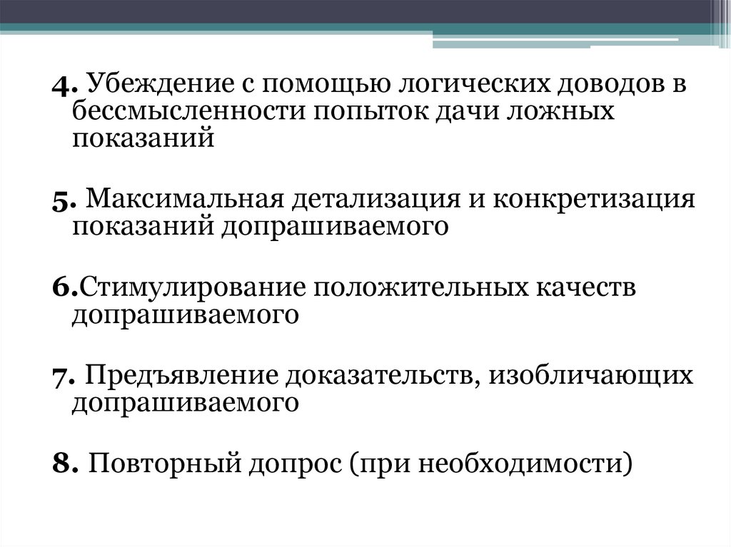 4. Убеждение с помощью логических доводов вбессмысленности попыток дачи ложных