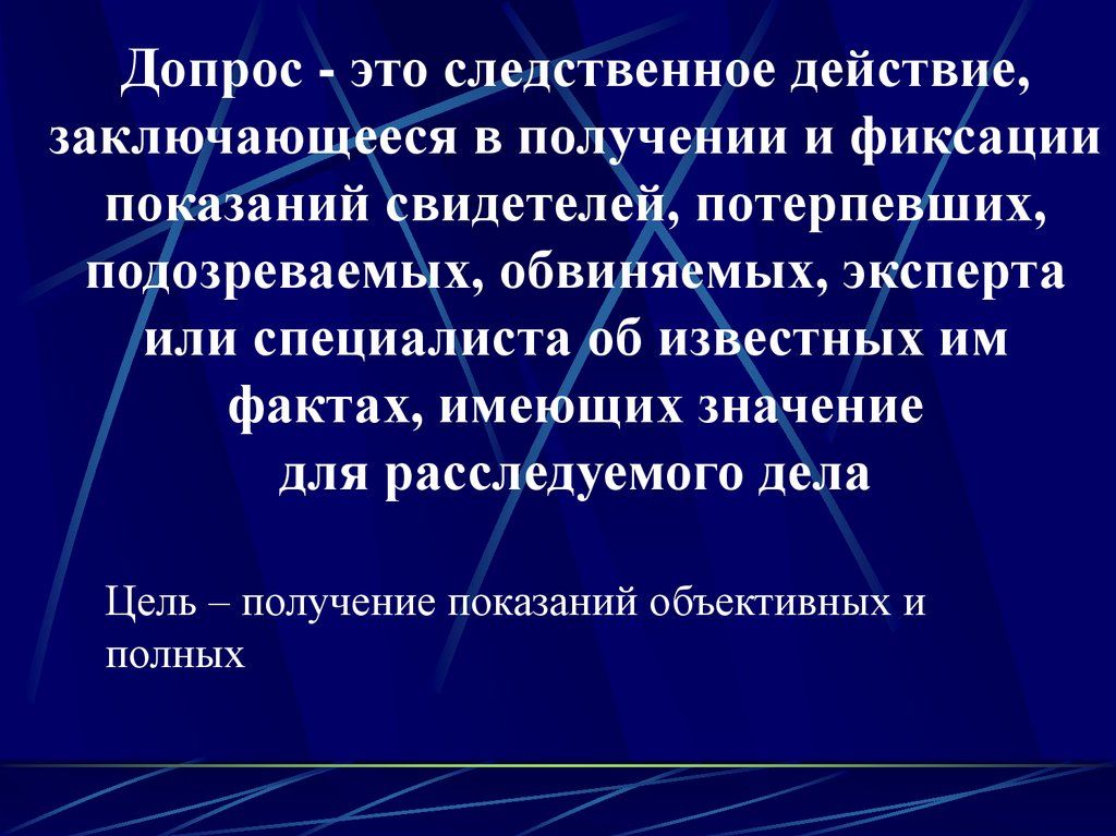 Допрос - это следственное действие,заключающееся в получении и фиксации