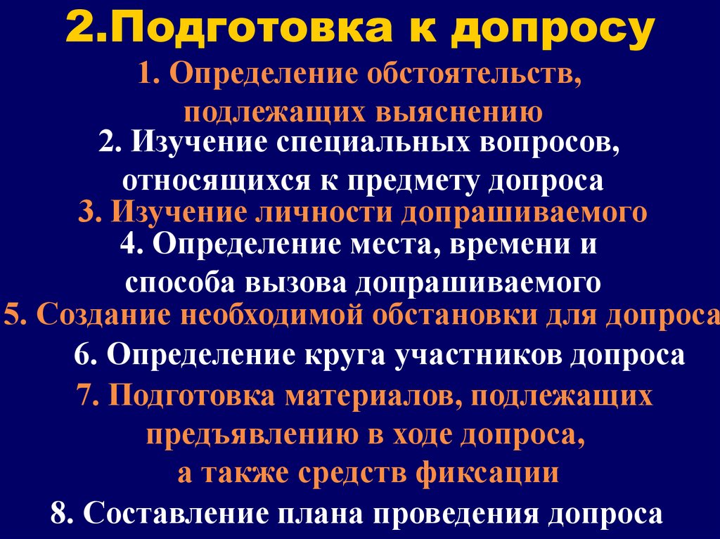 1. Понятие и виды допроса.2. Подготовка к допросу .