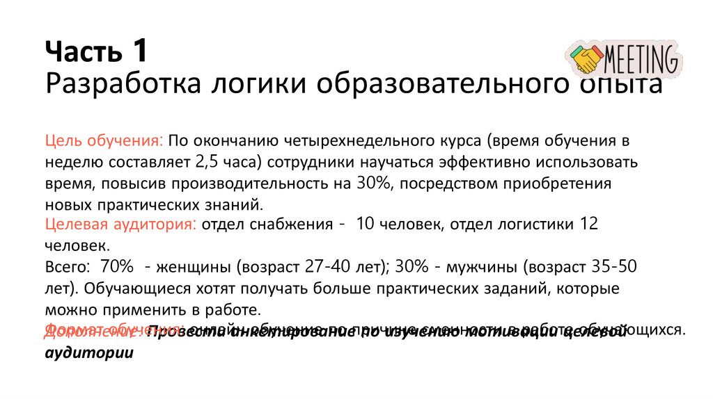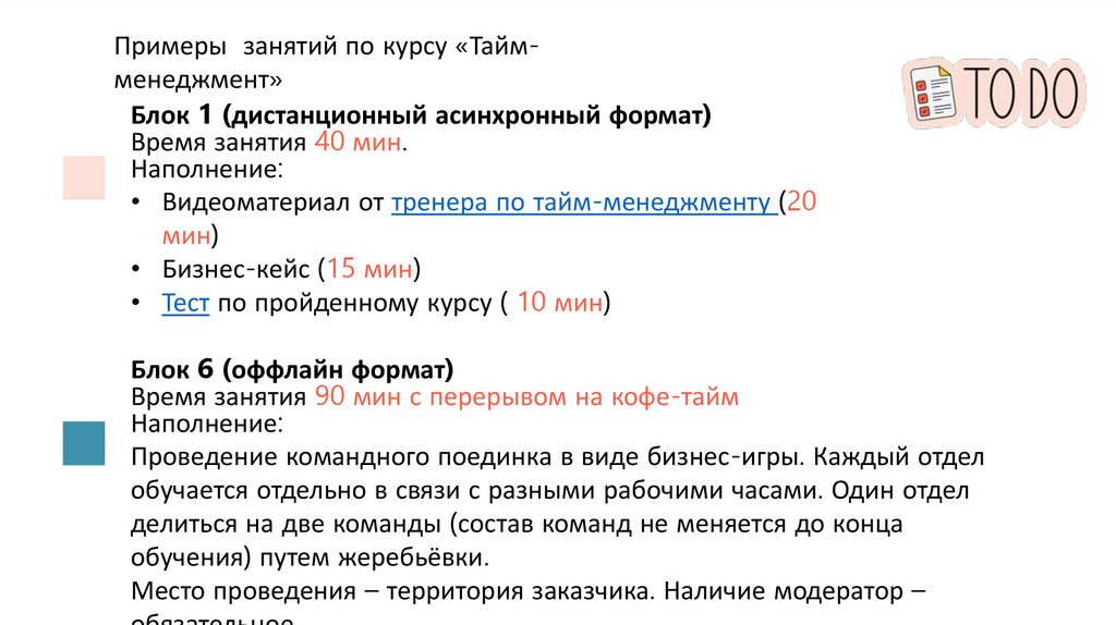 1. Обучение сотрудников заказчика тайм-менеджменту