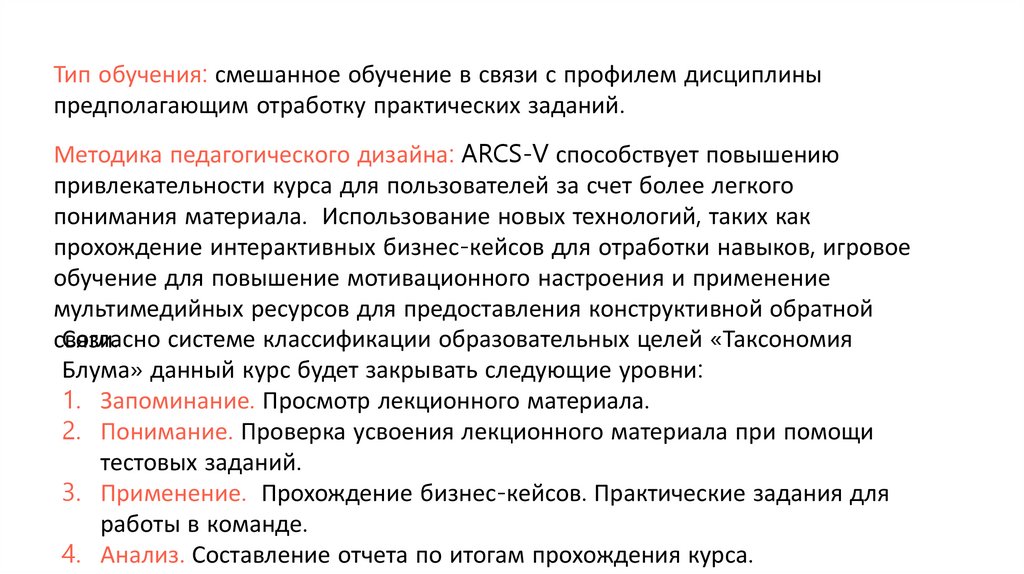 Тип обучения: смешанное обучение в связи с профилем дисциплиныпредполагающим отработку практических заданий.