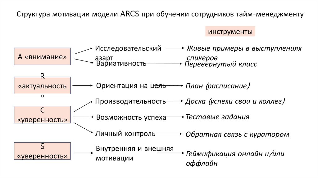 Структура мотивации модели ARCS при обучении сотрудников тайм-менеджментуинструменты