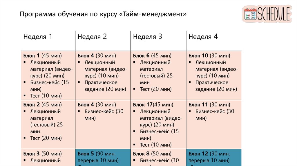 Программа обучения по курсу «Тайм-менеджмент»Неделя 1