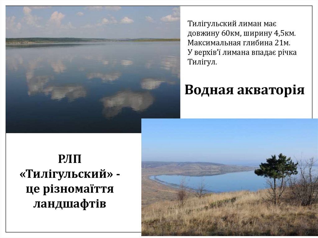 Тилігульский лиман маєдовжину 60км, ширину 4,5км.