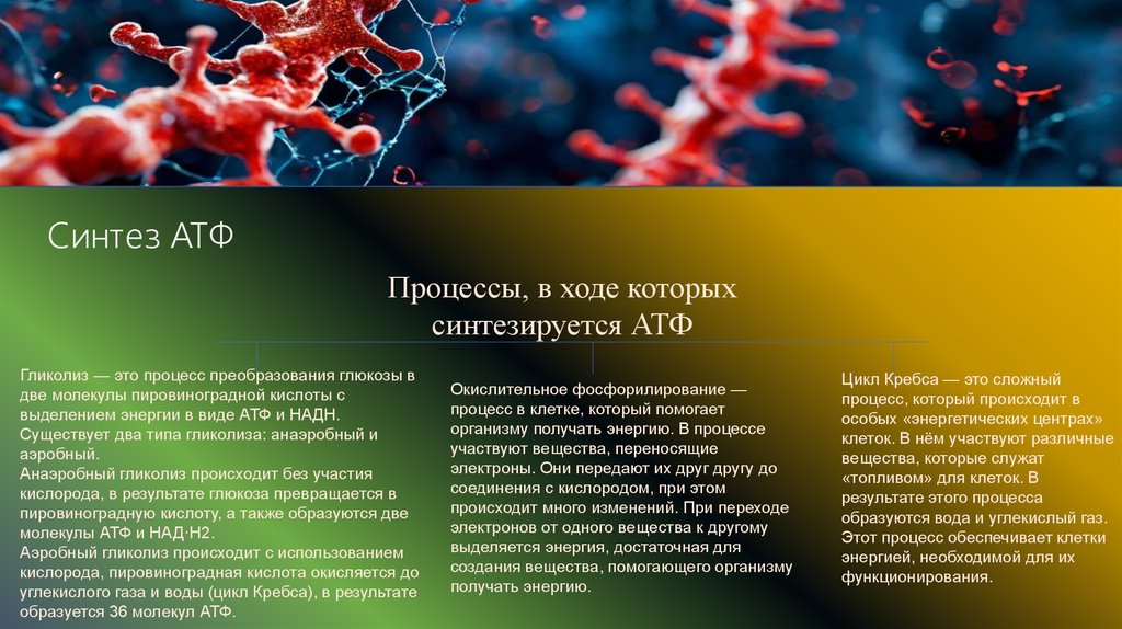 клеточного дыхания: 2 АТФ, 6 NADH, 2 FADH2, 4