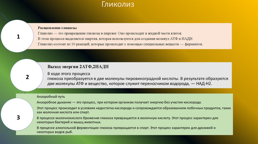 Гликолиз состоит из 10 реакций, которые происходят с помощью специальных веществ — ферментов.
