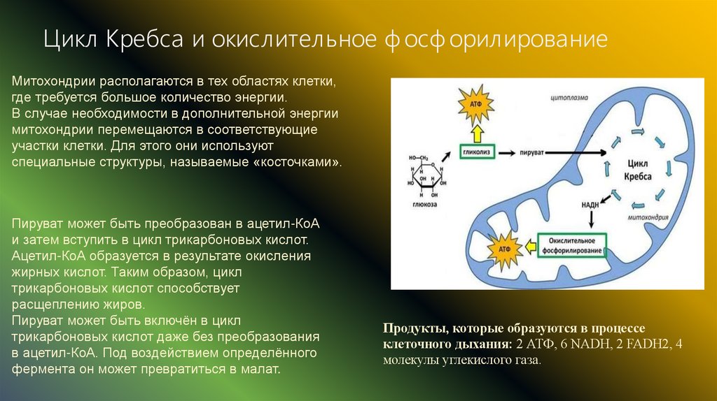 Цикл Кребса и окислительное ф осф орилированиеМитохондрии располагаются в тех областях клетки,