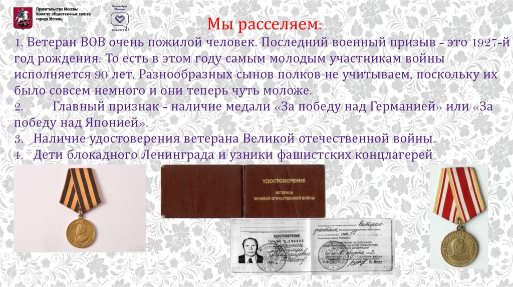 3. Наличие удостоверения ветерана Великой отечественной войны.
