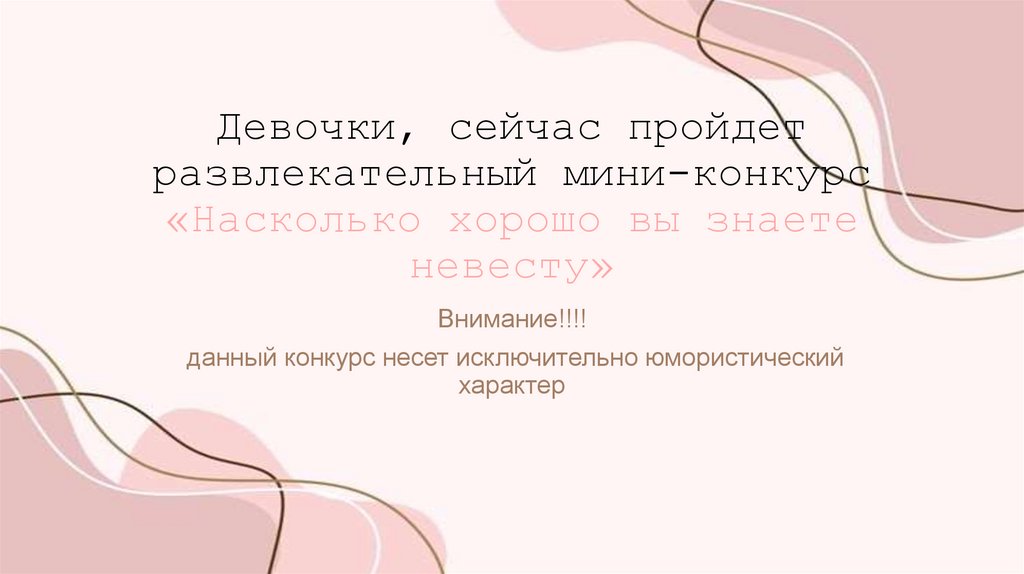1. Девочки, сейчас пройдет развлекательный мини-конкурс «Насколько хорошо вы знаете невесту»