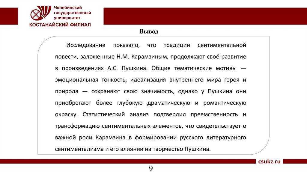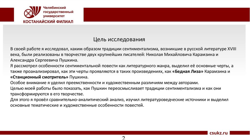 Целью моей работы было показать, как Пушкин переосмысливает традиции сентиментализма и как они