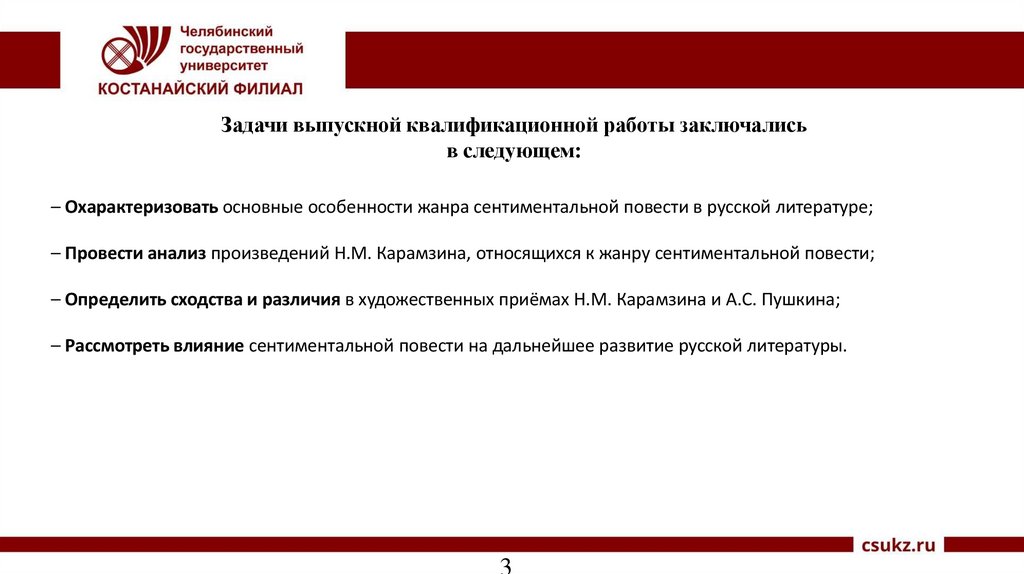 – Провести анализ произведений Н.М. Карамзина, относящихся к жанру сентиментальной повести;