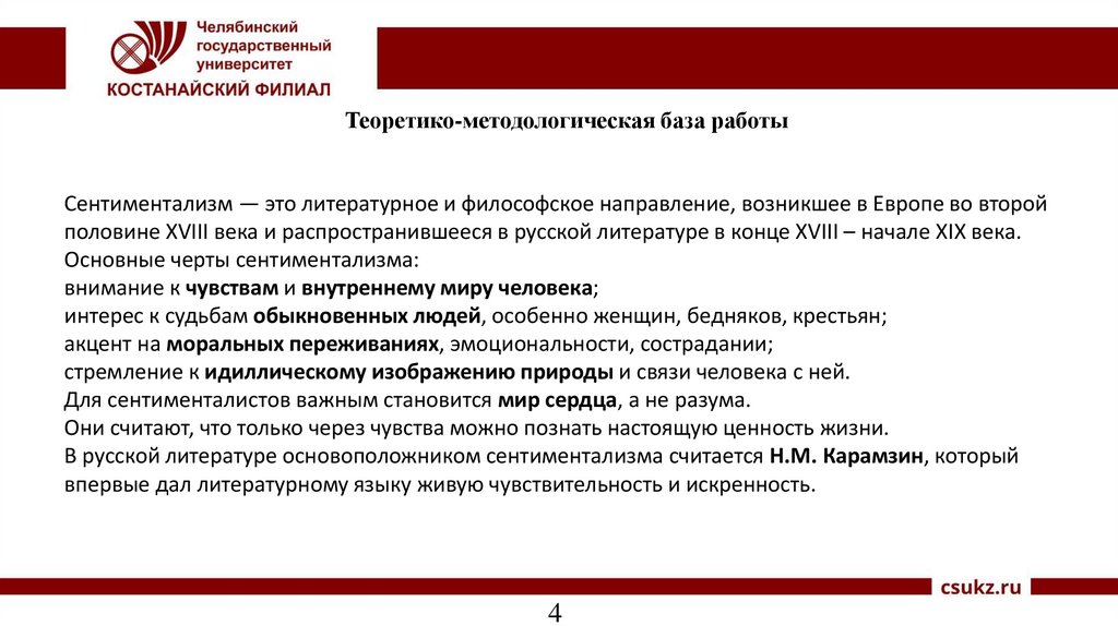 Теоретико-методологическая база работыСентиментализм — это литературное и философское направление, возникшее в Европе во второй