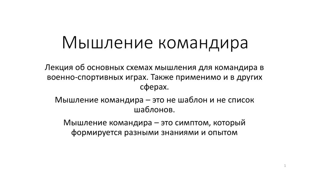 Лекция об основных схемах мышления для командира ввоенно-спортивных играх. Также применимо и в других