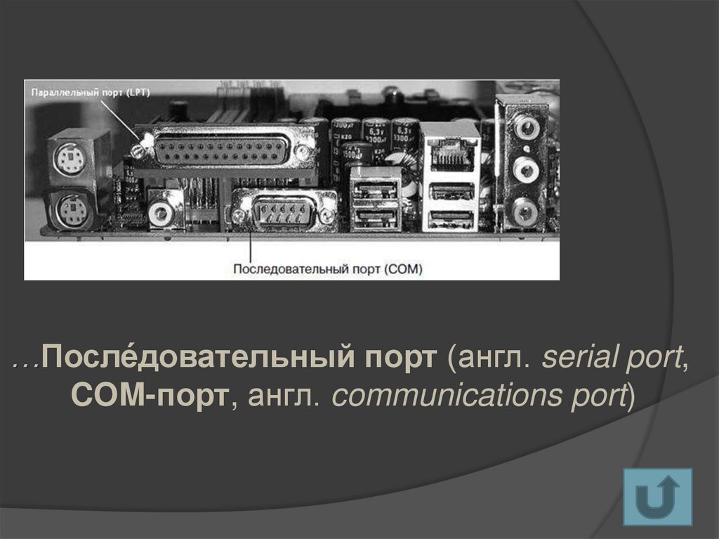 …После́довательный порт (англ. serial port,COM-порт, англ. communications port)