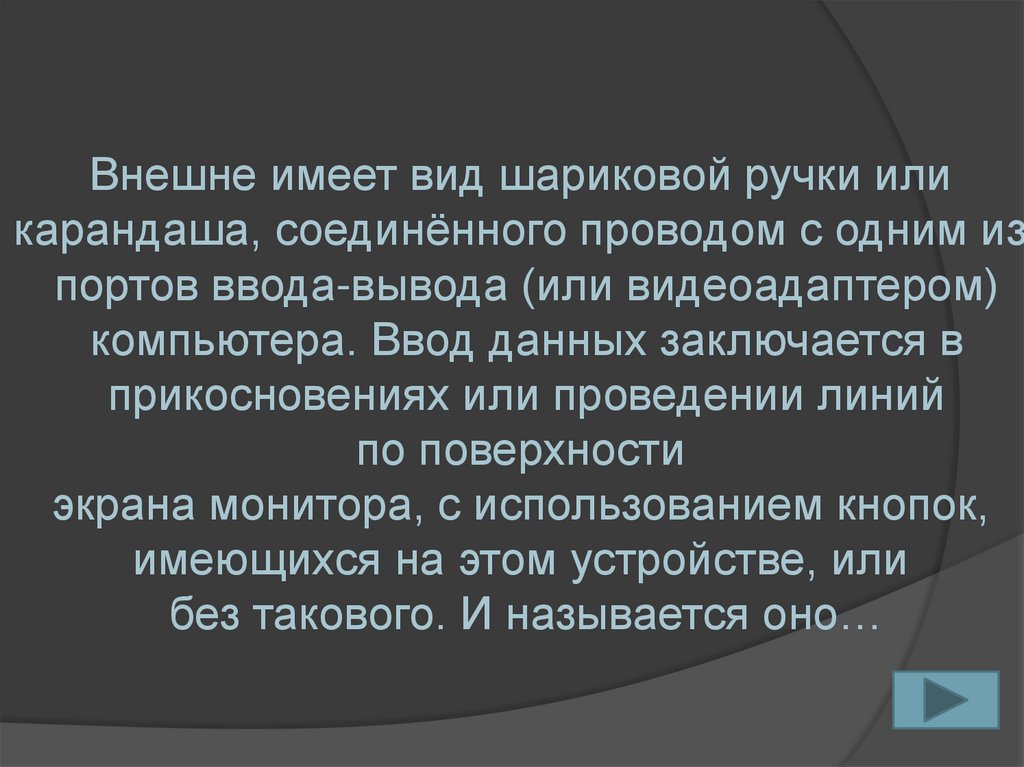 Устройство ввода информации в персональныйкомпьютер, которое представляет собой