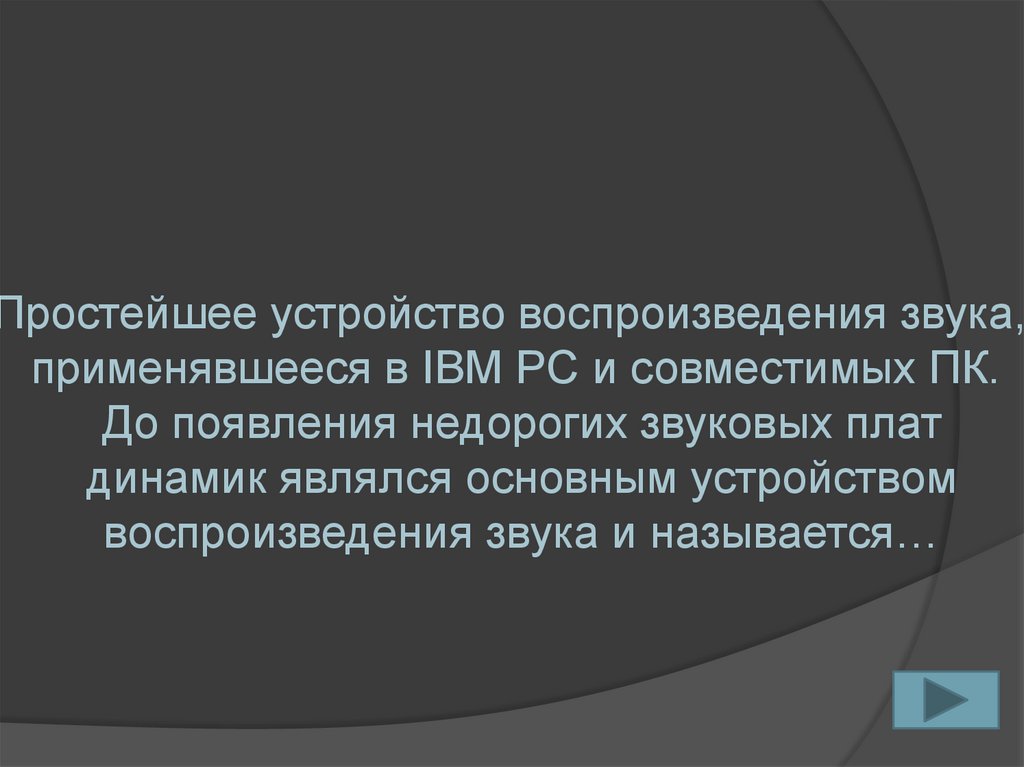 Простейшее устройство воспроизведения звука,применявшееся в IBM PC и совместимых ПК.