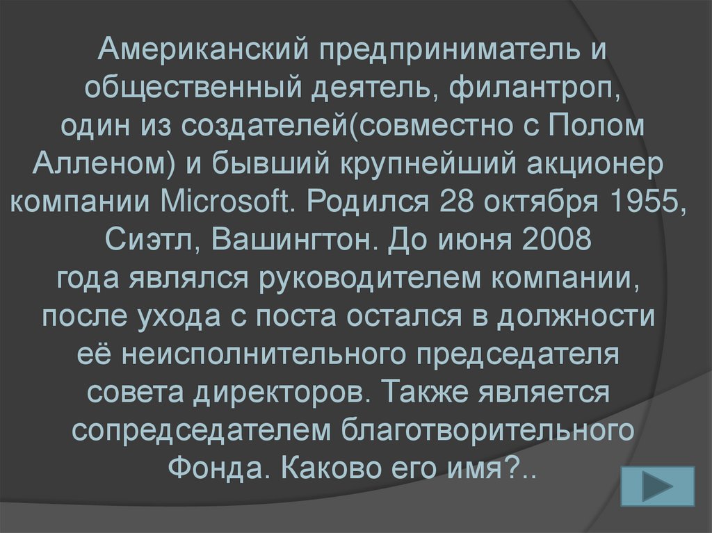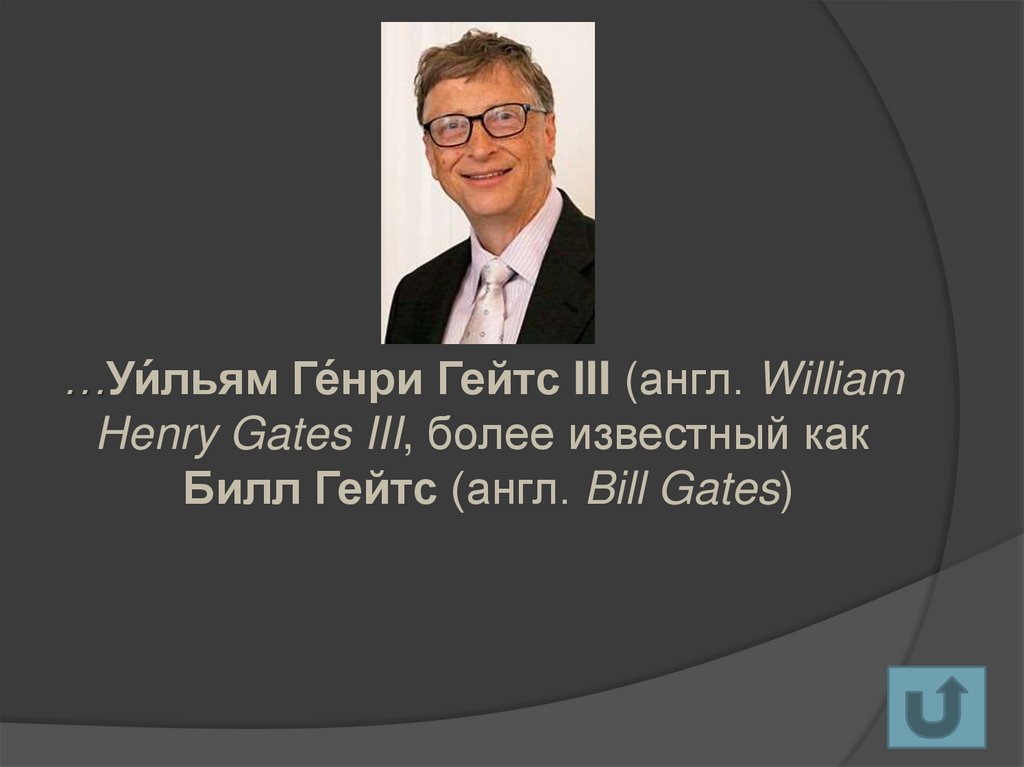 …Уи́льям Ге́нри Гейтс III (англ. WilliamHenry Gates III, более известный как