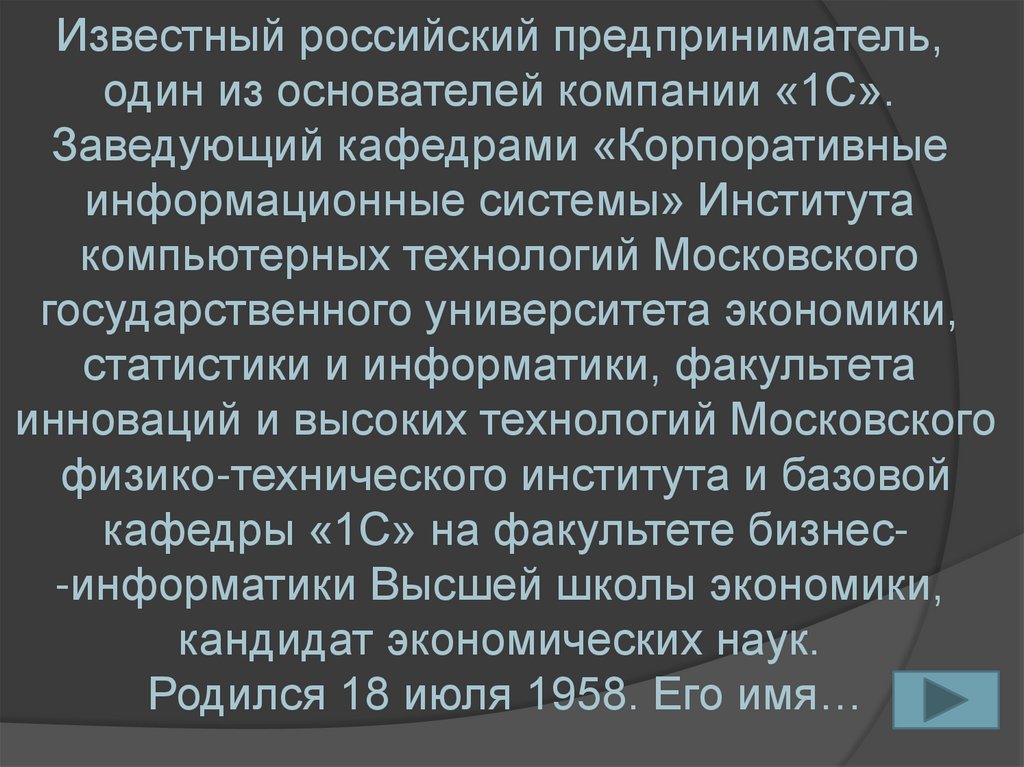 Российский предприниматель, программист,рублёвый миллиардер, один из создателей