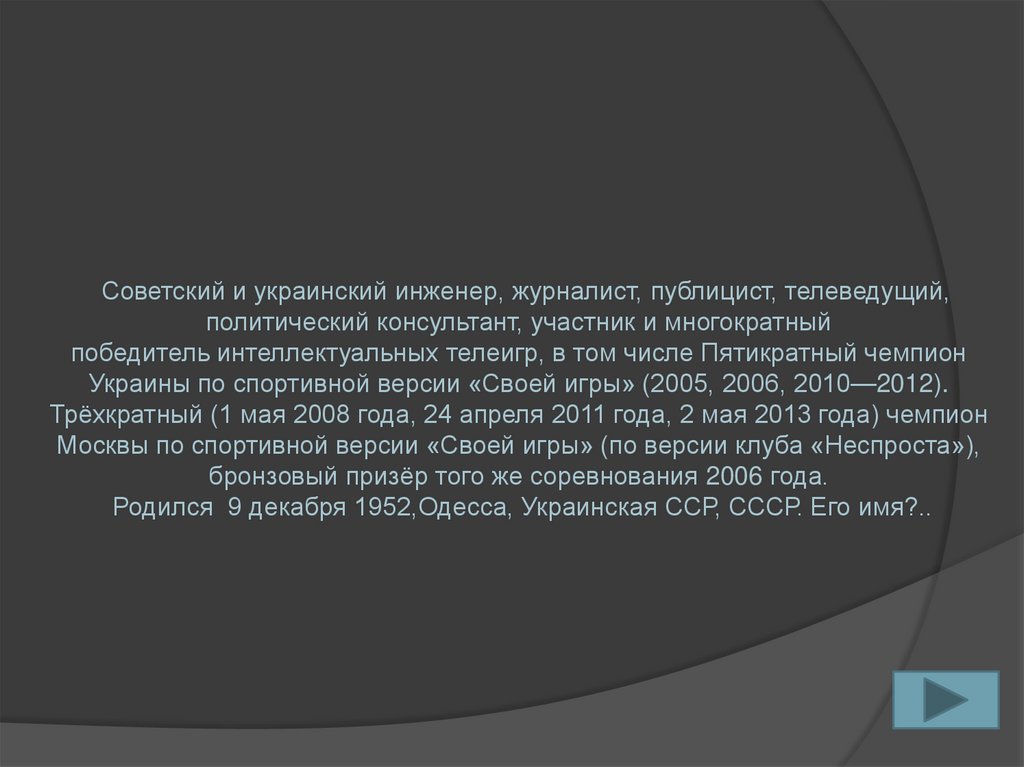 Советский и украинский инженер, журналист, публицист, телеведущий,политический консультант, участник и многократный