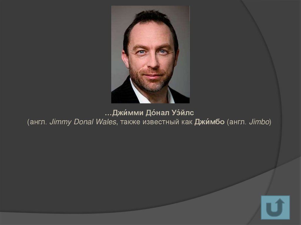 …Джи́мми До́нал Уэ́йлс(англ. Jimmy Donal Wales, также известный как Джи́мбо (англ. Jimbo)