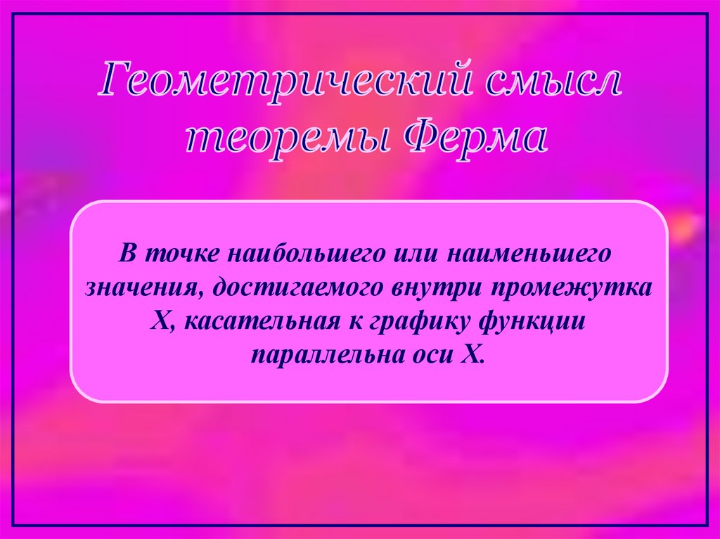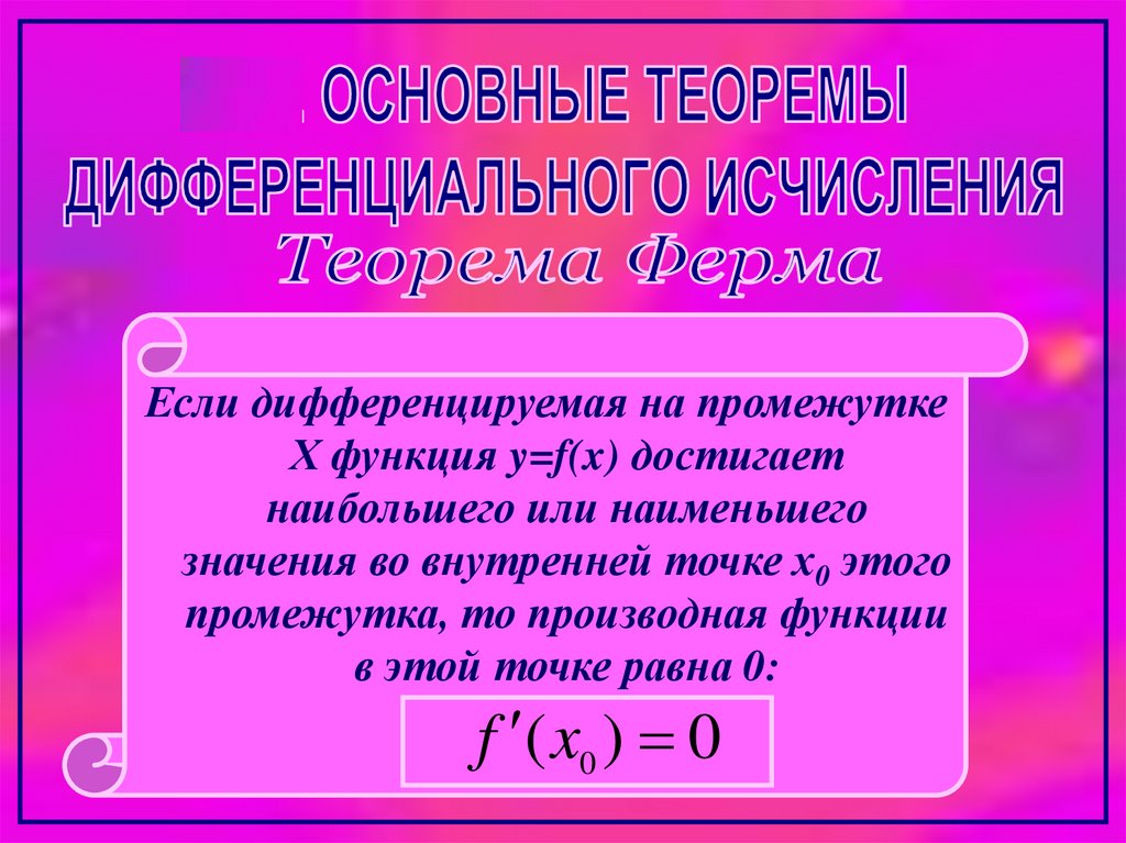 Основные теоремы дифференциального исчисления. Теорема Ферма