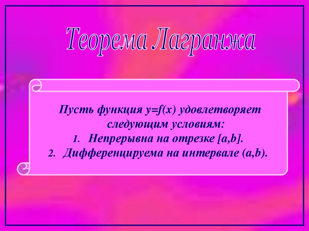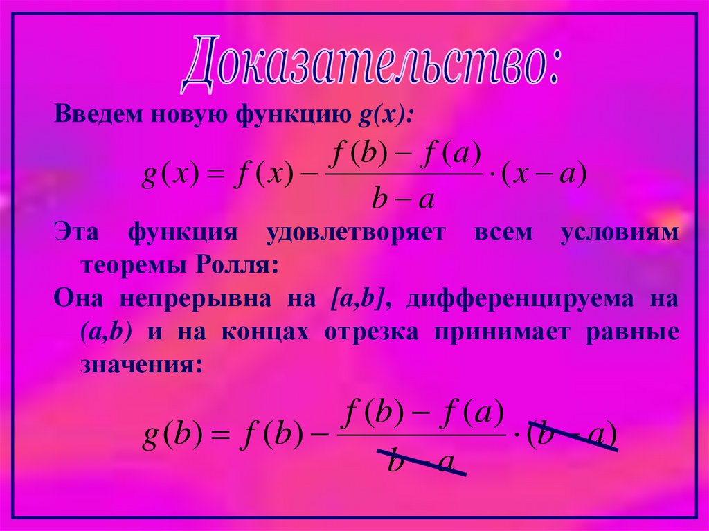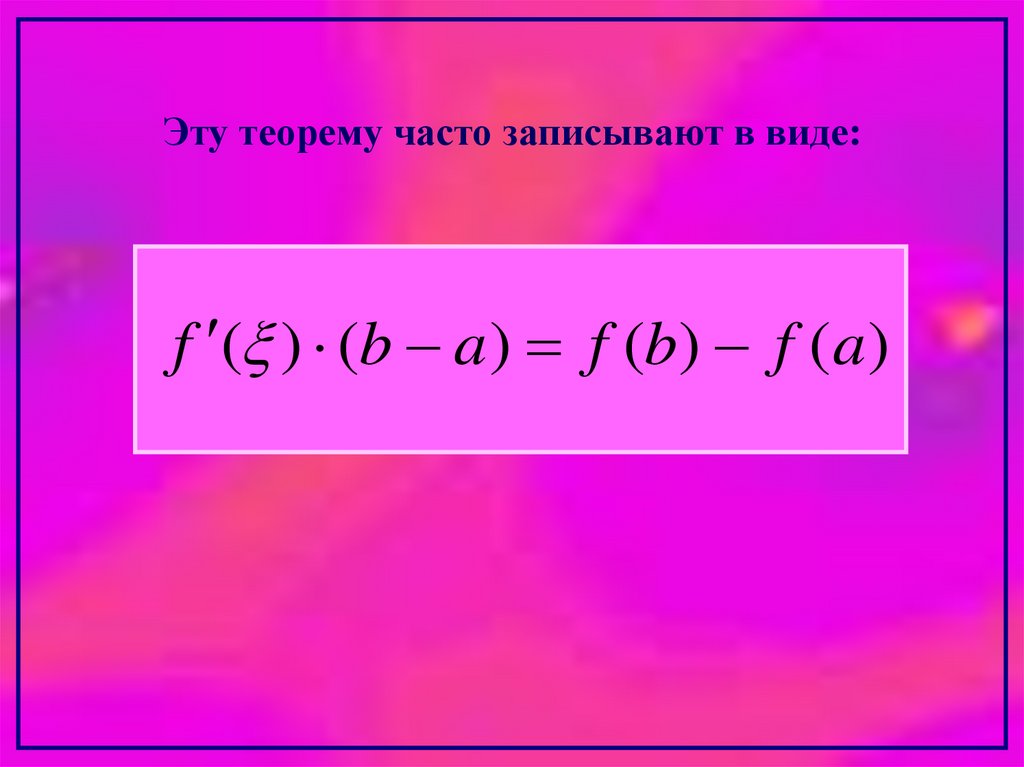 Эту теорему часто записывают в виде:f ( ) (b a ) f (b) f (a )