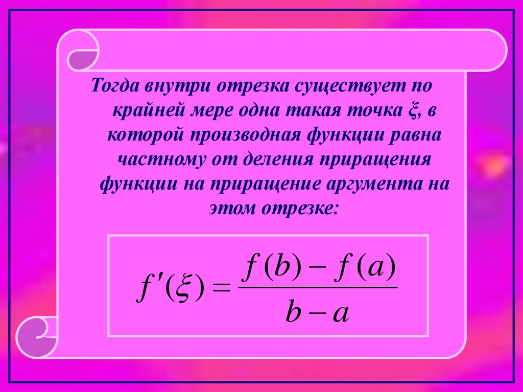 Тогда внутри отрезка существует покрайней мере одна такая точка ξ, в