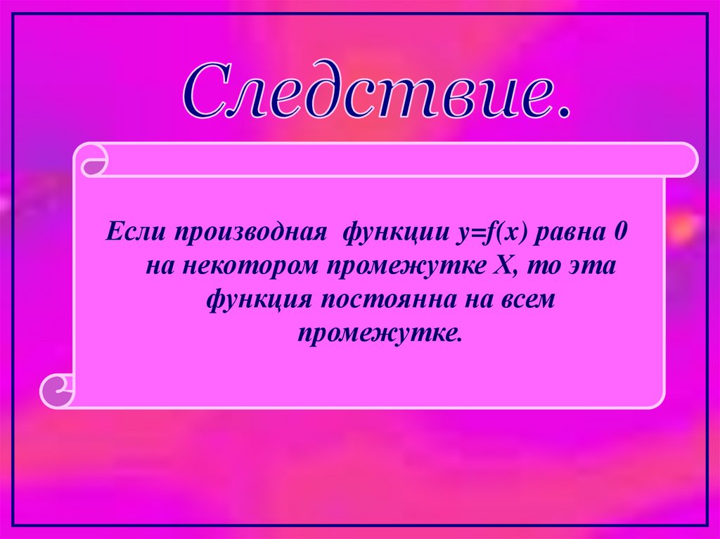 Если производная функции y=f(x) равна 0на некотором промежутке Х, то эта
