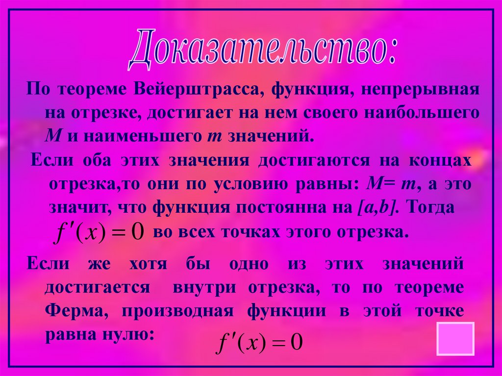 Если дифференцируемая на промежуткеХ функция y=f(x) достигает