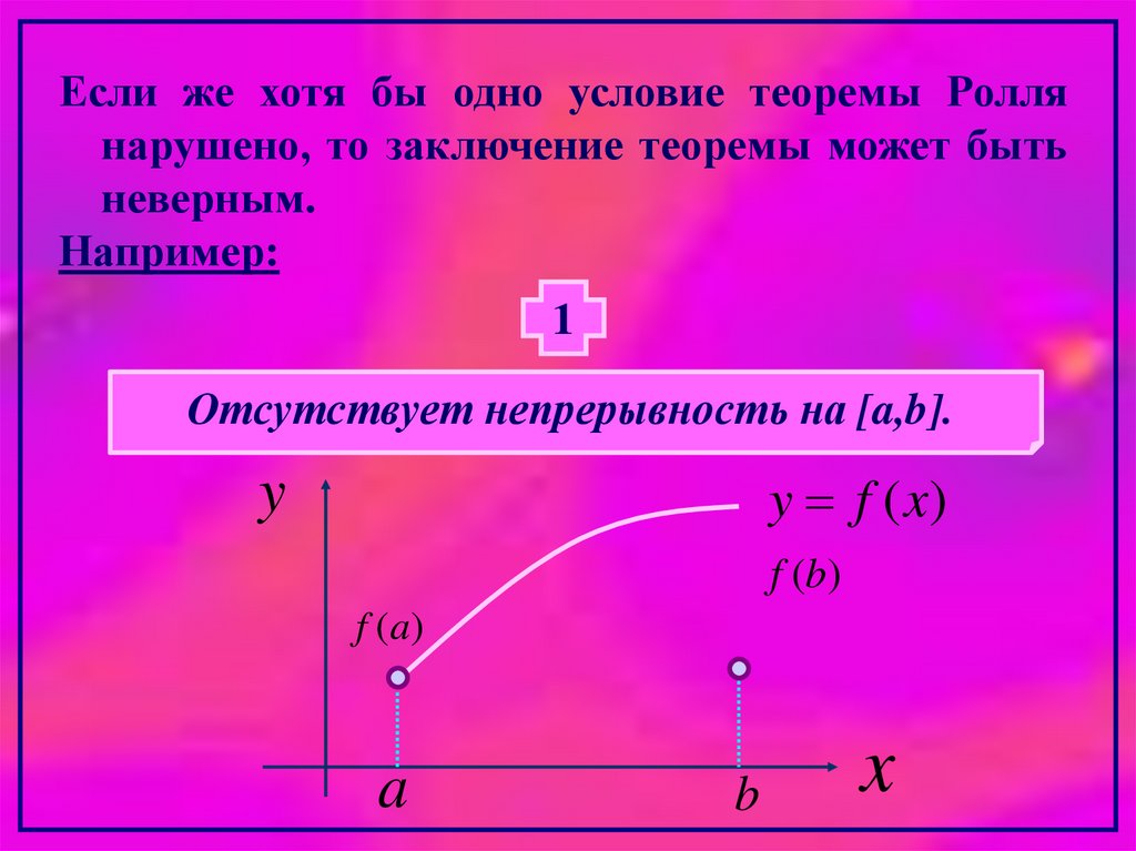 Если же хотя бы одно условие теоремы Роллянарушено, то заключение теоремы может быть