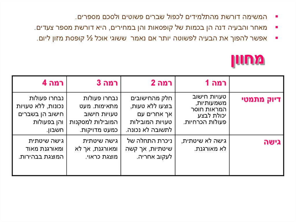 ומחשבה ,עקביות ,גמישות ,הכללות.