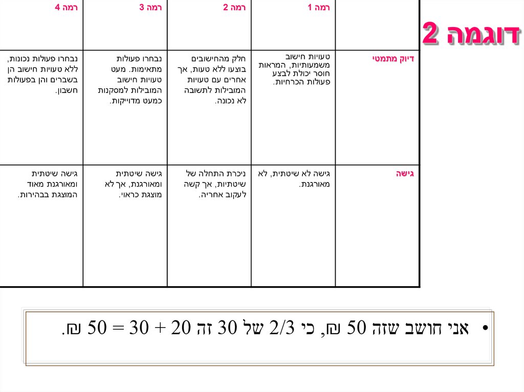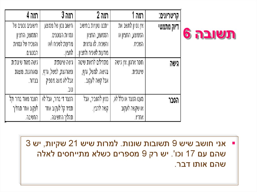 והעלאת רמות החשיבה משאלה לשאלה.