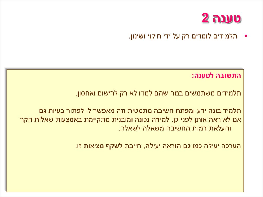 טענה 2 תלמידים לומדים רק על ידי חיקוי ושינון.
