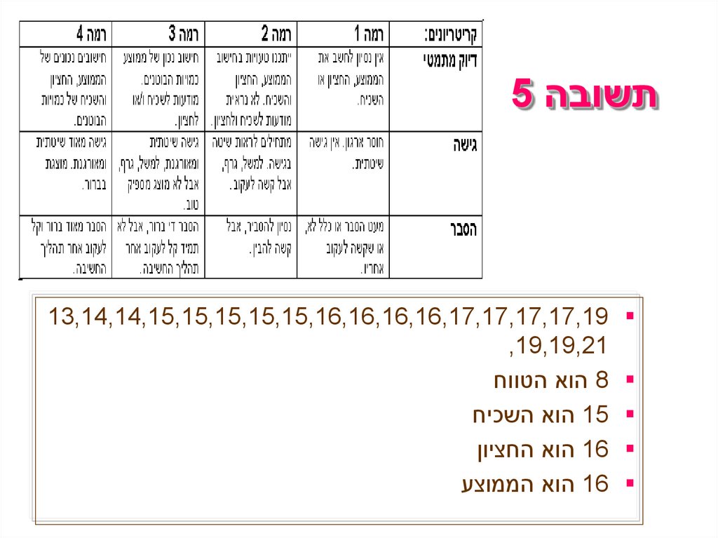 תשובה 513,14,14,15,15,15,15,15,16,16,16,16,17,17,17,17,19