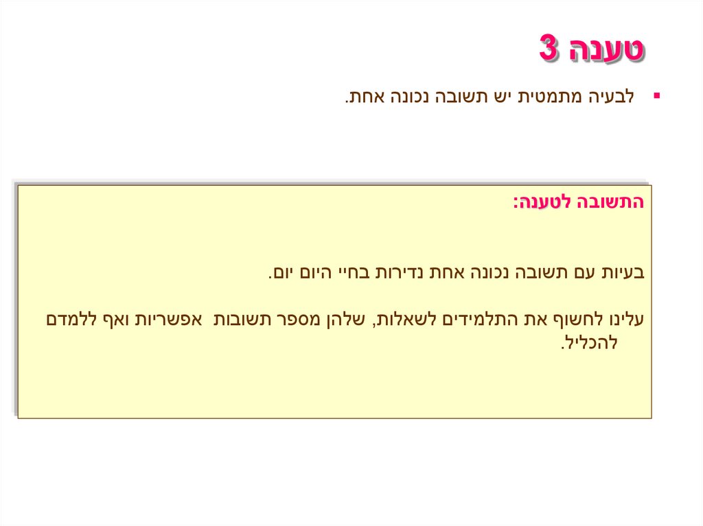טענה 3 לבעיה מתמטית יש תשובה נכונה אחת.
