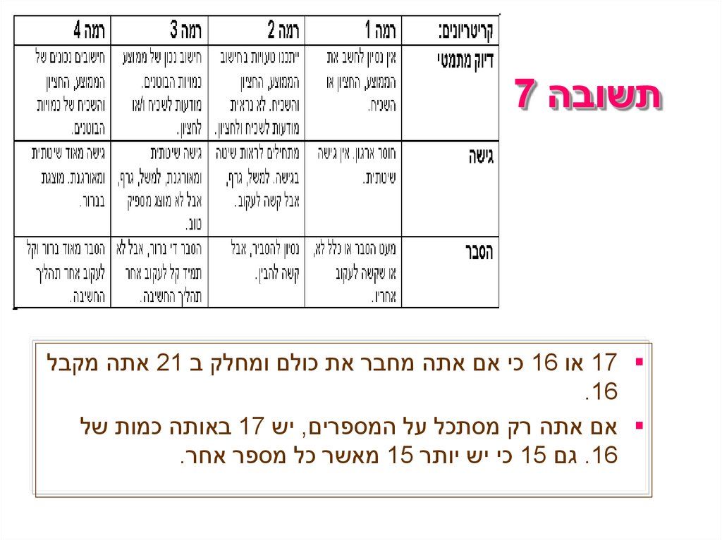 תשובה 7 17 או 16כי אם אתה מחבר את כולם ומחלק ב 21אתה מקבל