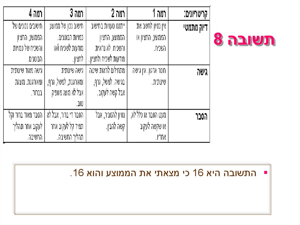 תשובה 8 התשובה היא 16כי מצאתי את הממוצע והוא .16
