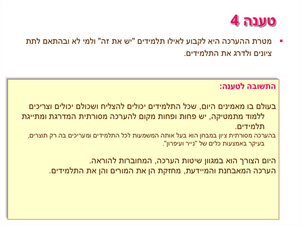 טענה 4 מטרת ההערכה היא לקבוע לאילו תלמידים "יש את זה" ולמי לא ובהתאם לתת