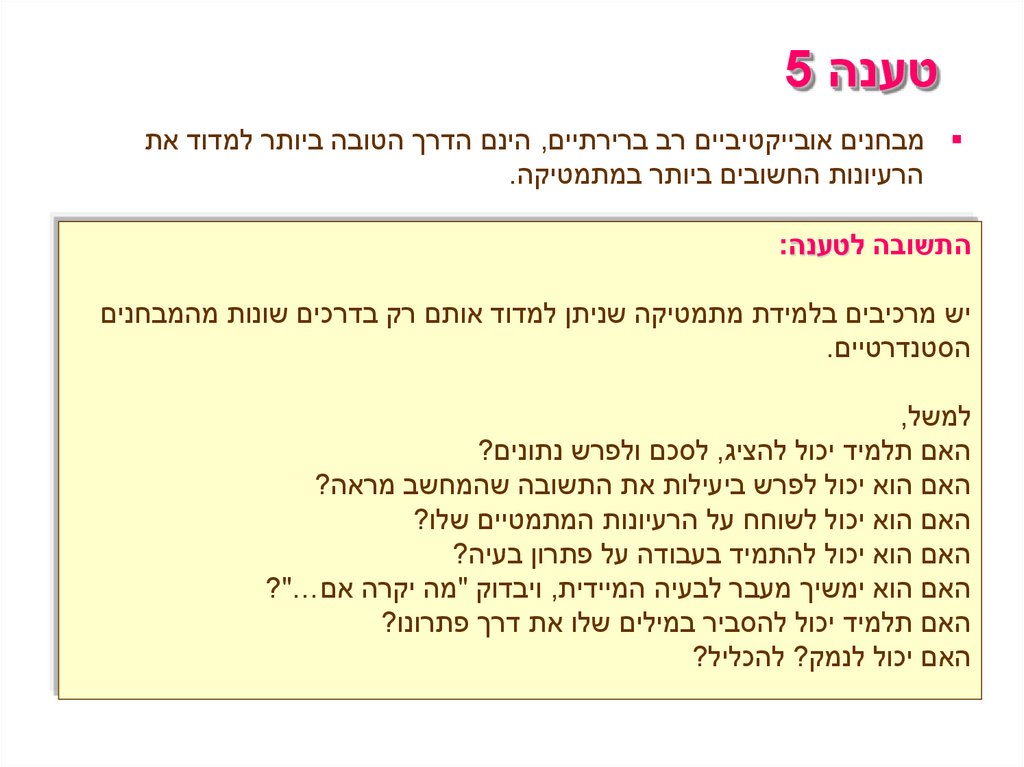 טענה 5 מבחנים אובייקטיביים רב ברירתיים ,הינם הדרך הטובה ביותר למדוד את